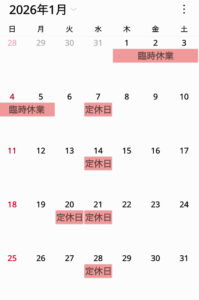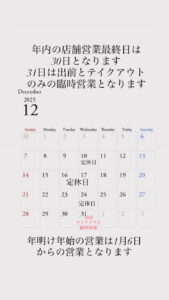 年内の営業は既に満席となっている日もございますのでお電話にてご確認下さいませ